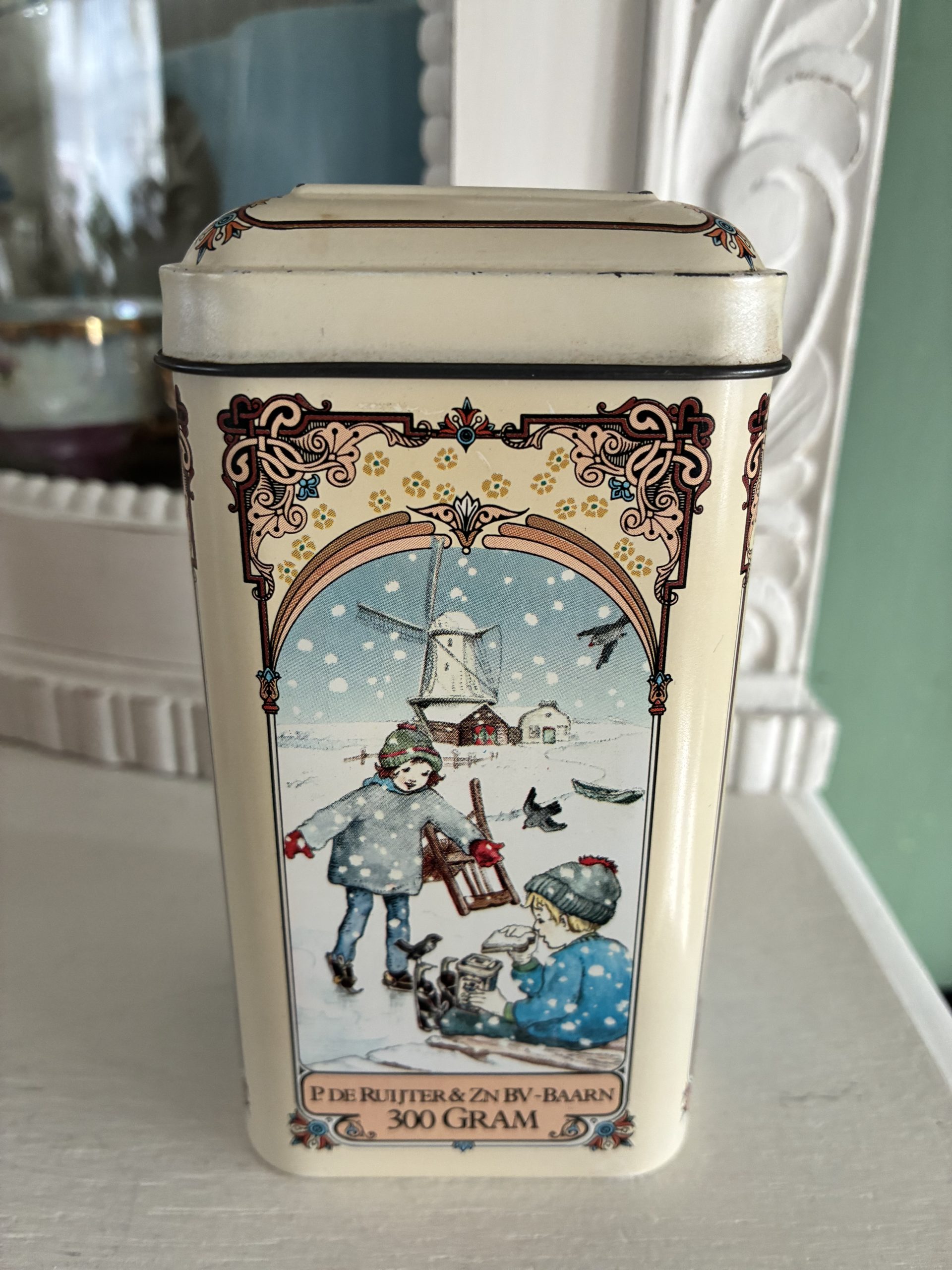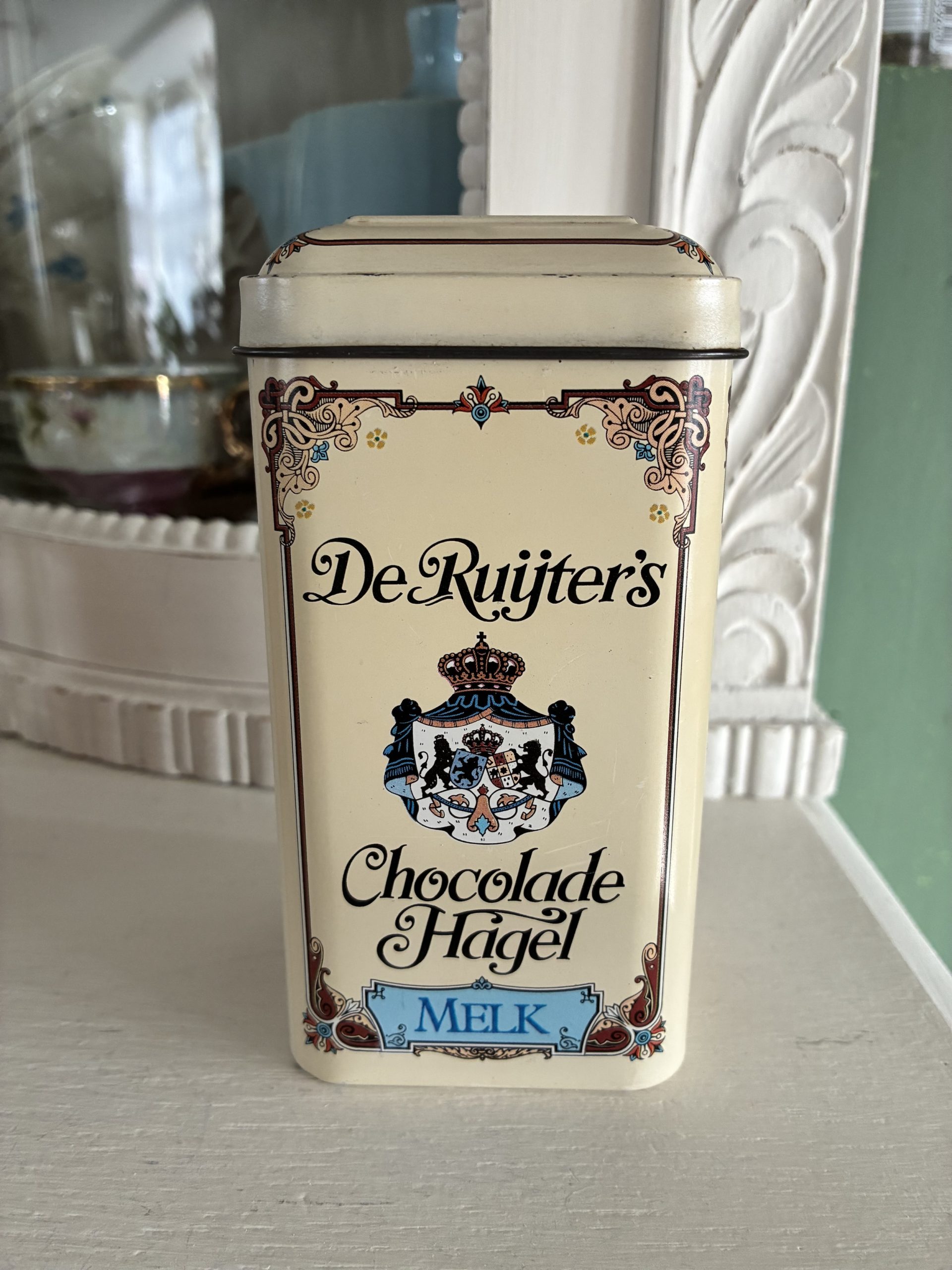 Vintage blikje van de Ruijter melkchocolade. Prachtige nostalgische afbeeldingen.