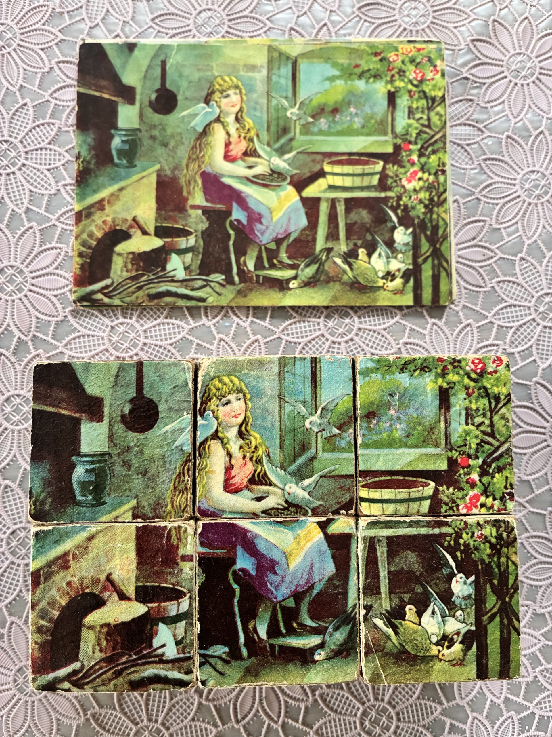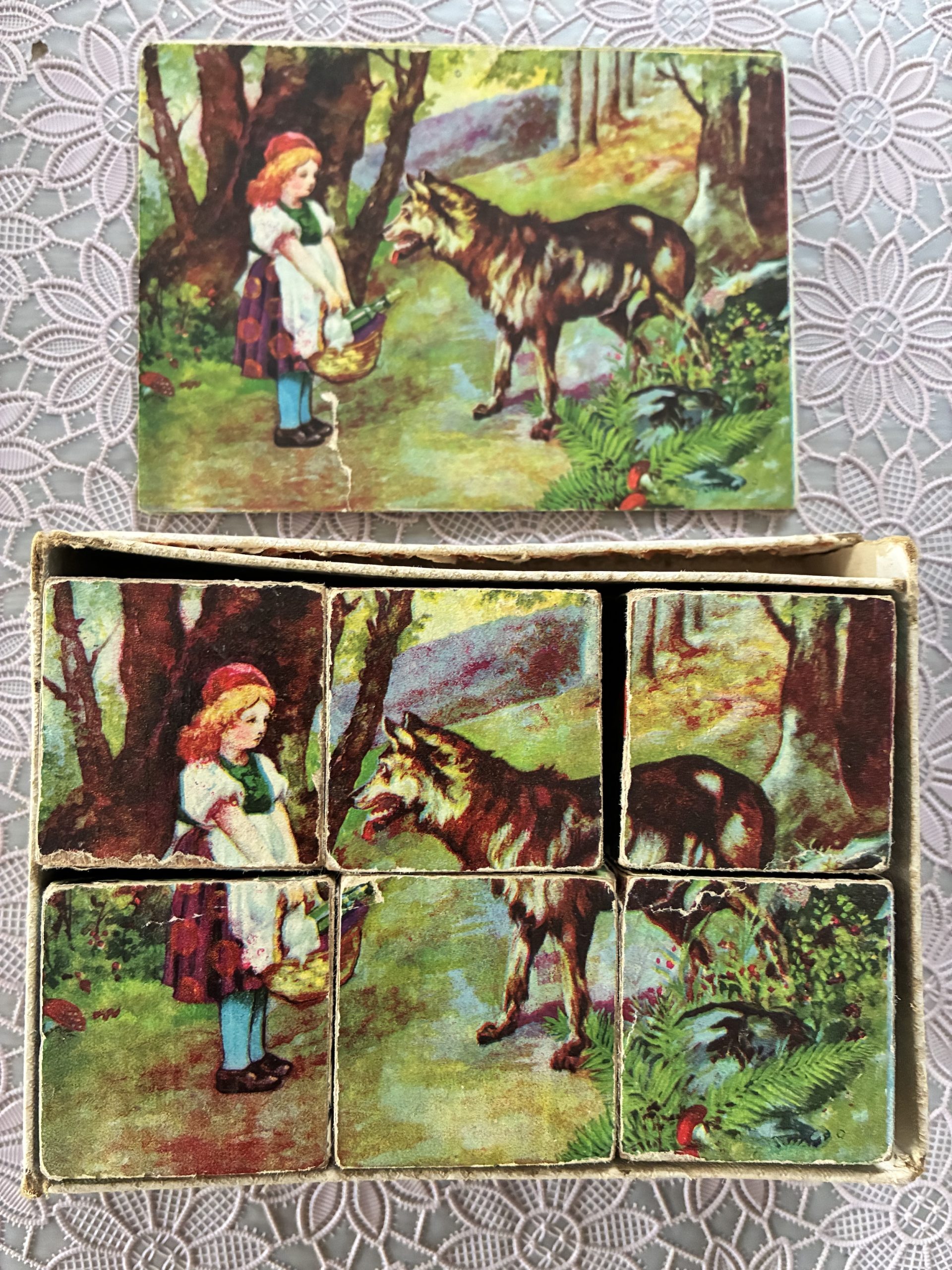 Vintage blokpuzzeltje in originele doosje. Alle afbeeldingen zijn er nog bij!