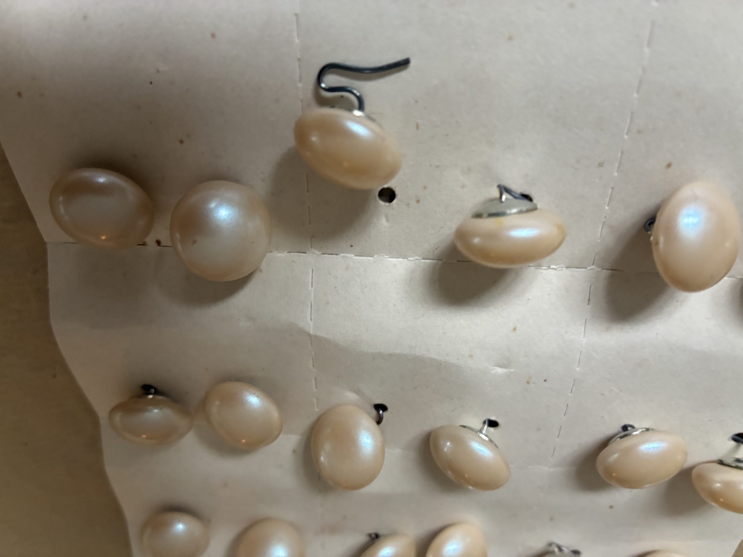 Kaart vintage parelmoer knopen met haakjes eraan, 24 stuks.