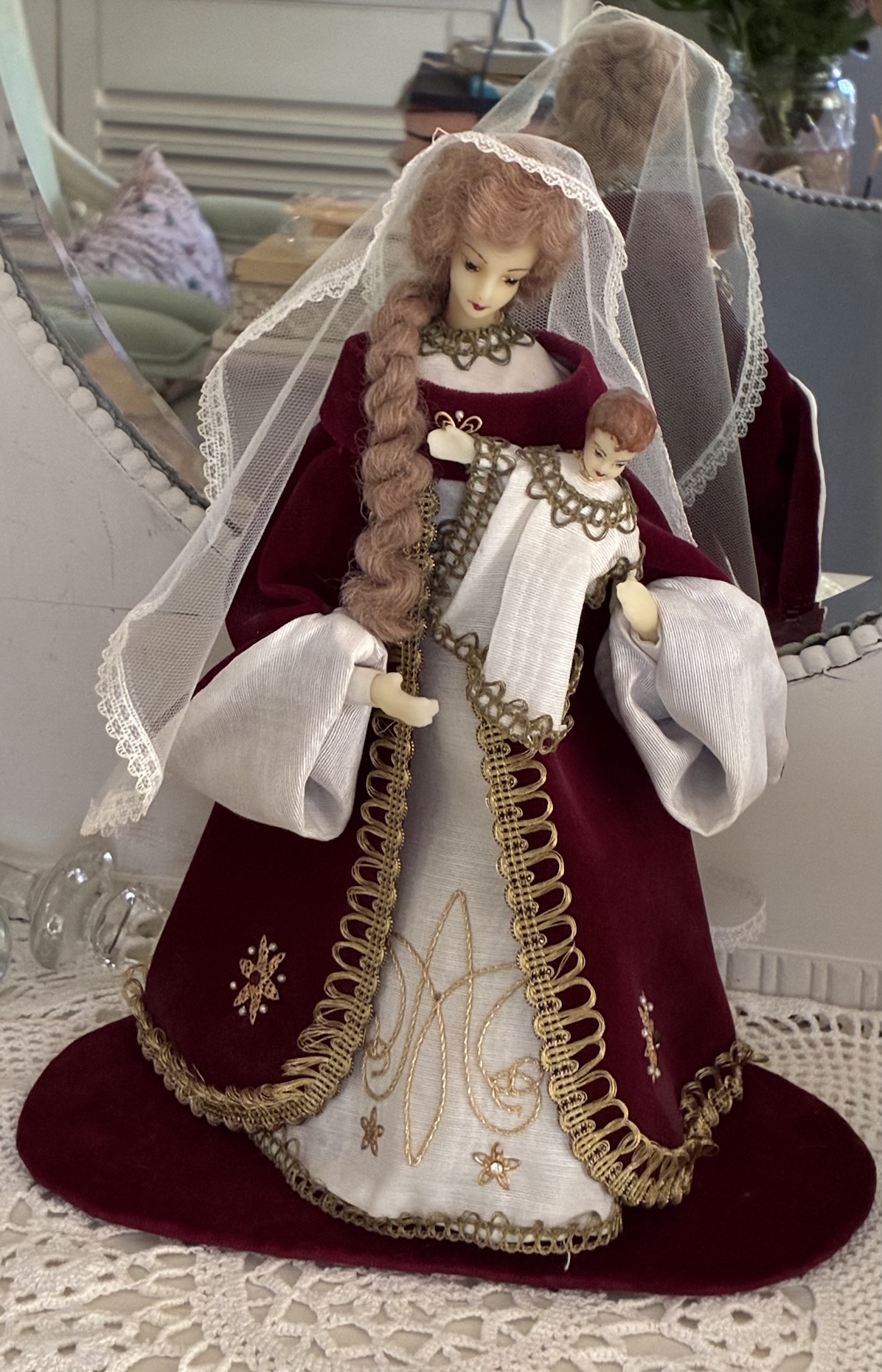 Wassen Maria met kind uit Italië. Erg mooi onder een ovalen stolp.